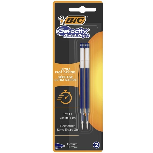 Description de Recharge Stylo Bic Gel Ocity Quick Dry – Pointe moyenne 0,7 mm – Bleu – 2 pcs