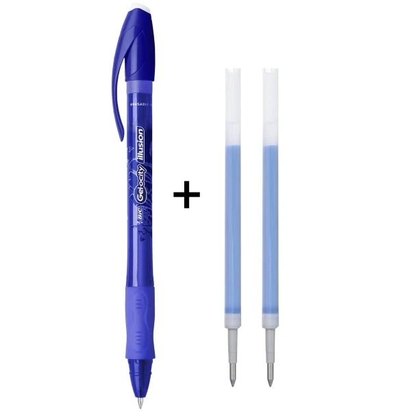 Description de Stylo Bic Gel Ocity illusion + recharges – encre gel effaçable – Bleu – 3 pcs