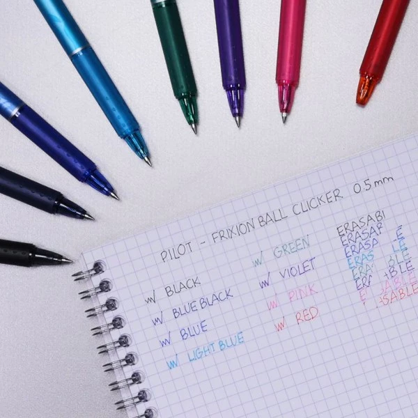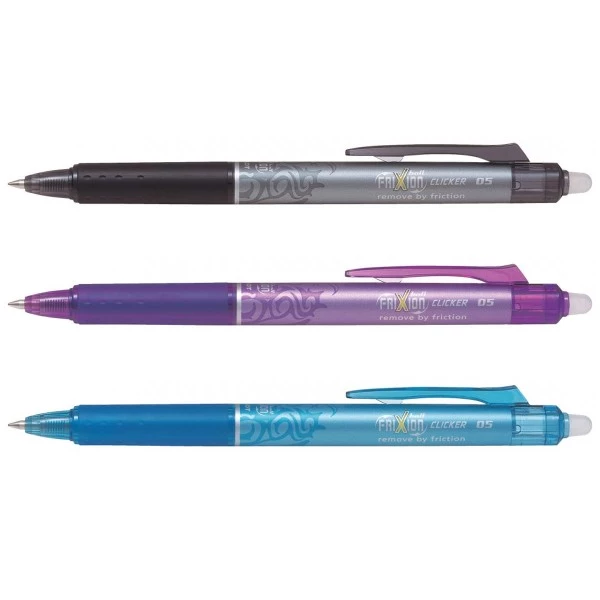 Écrivez, notez, effacez, corrigez, soulignez … Cliquez et recommencez avec les stylos FriXion Clicker de Pilot. Grâce à leur encre thermosensible brevetée, Pilot a révolutionné l’écriture avec ce stylo roller gel à encre effaçable.