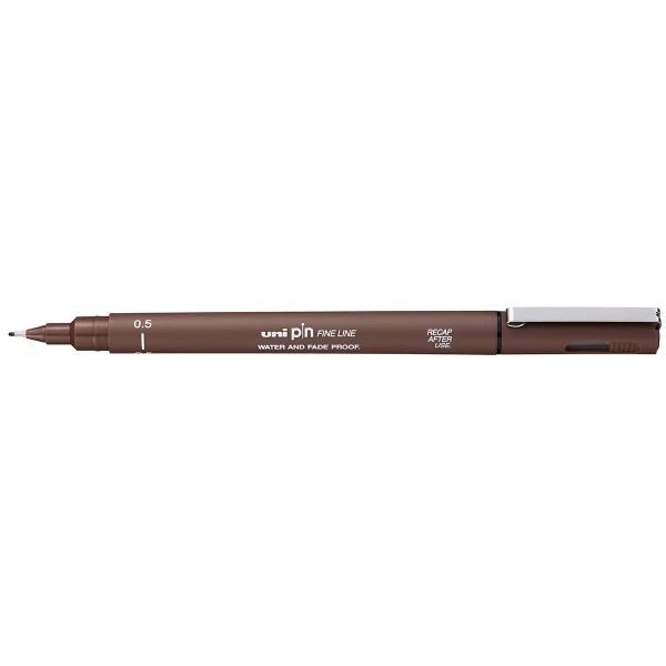 Description de Feutre technique Uni Pin – Pointe calibrée 0,5 mm – Sépia