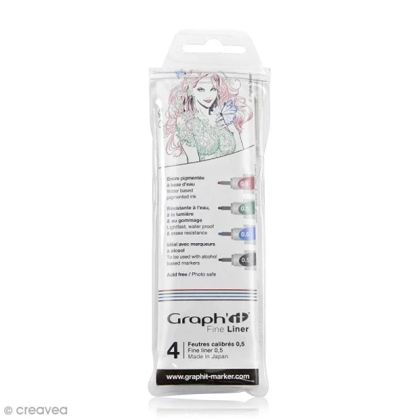 Pochette de stylos feutres techniques Fine liner par Graph’it, pour des tracés nets, précis et réguliers. Idéal pour papier calque et colorisation aux marqueurs à alcool.