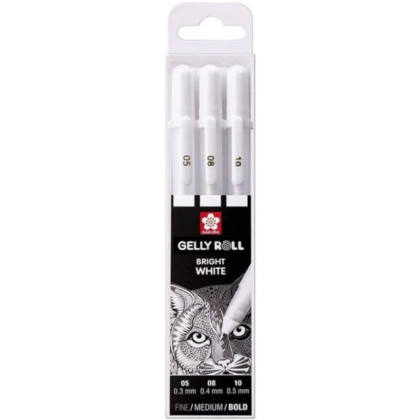Description de Etui de 3 stylos Sakura Gelly Basic White – Blanc – 0,3/0,4/0,5 mm -Sakura
