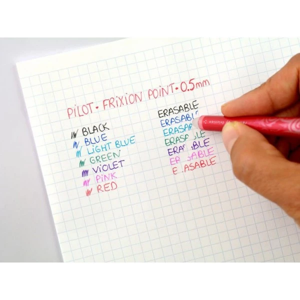 - Le stylo à encre gel FriXion Point Pilot permet d’écrire, d’effacer, de réécrire à l’infini !