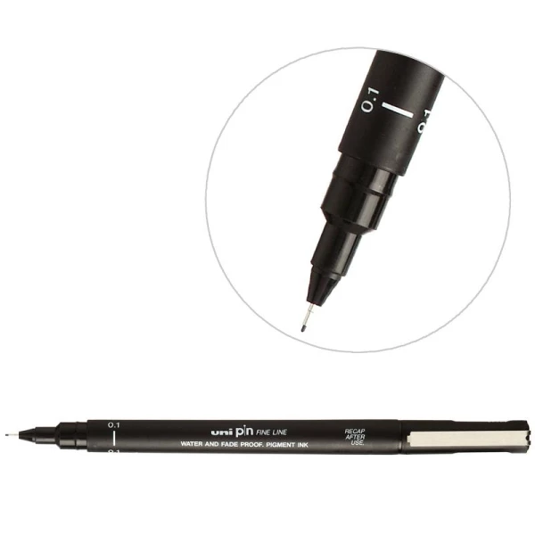 Stylo feutre technique à pointe calibrée 0,1 mm noir pour écrire, dessiner et annoter avec précision.